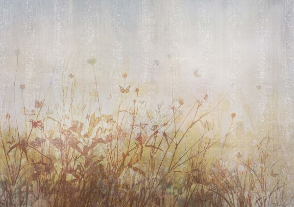 Motyle i kwiaty na fototapecie. Kolory nadają tej tapecie klimat vintage.