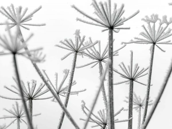 Zmrożone kwiaty w mroźny zimowy dzień.
