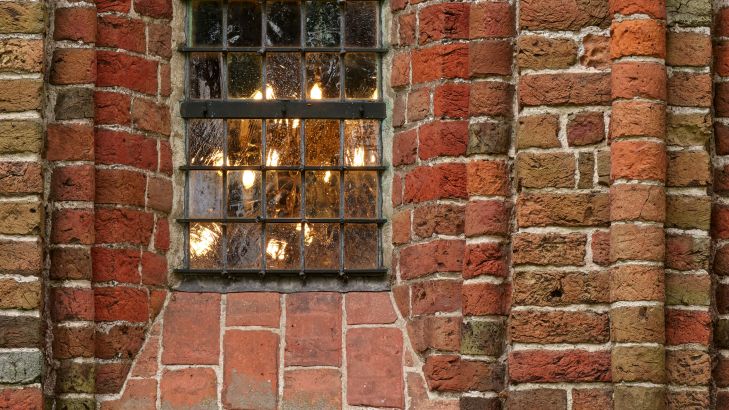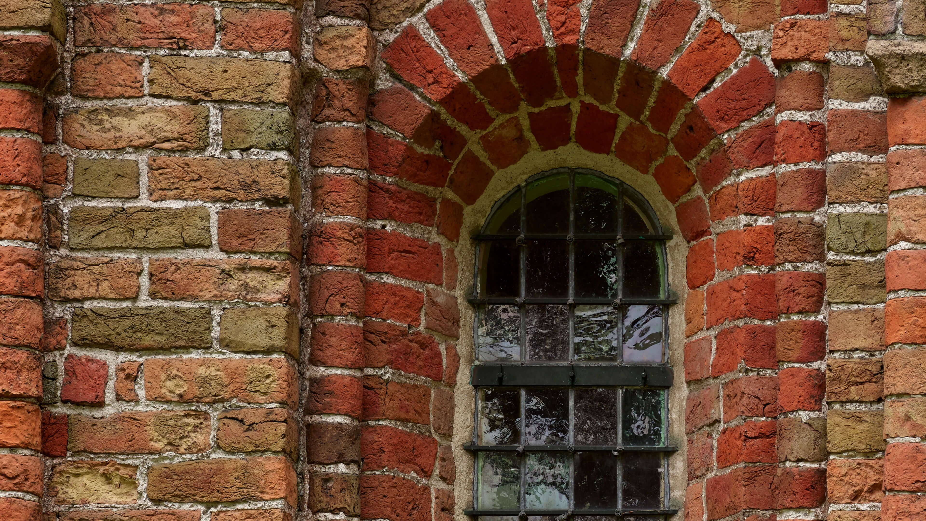 Mur z cegły z łukami i oknami. Dzięki tej fototapecie możesz zamienić białą ścianę w prawdziwą atrakcję przyciągającą wzrok.