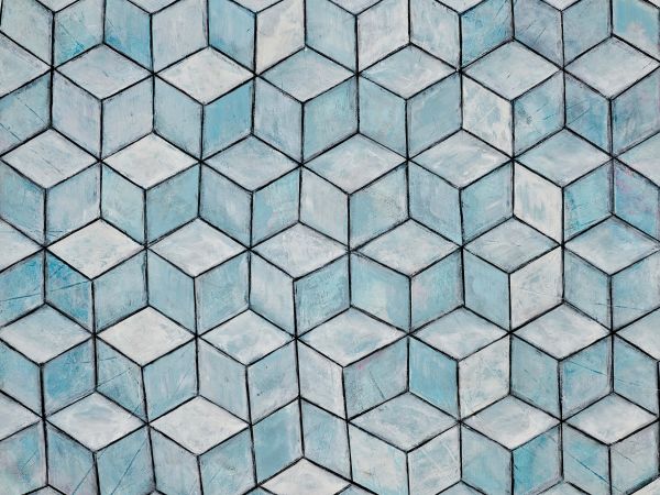 Pięknie namalowana struktura bloków. Geometryczne niebieskie bloki dają ładny efekt 3D.