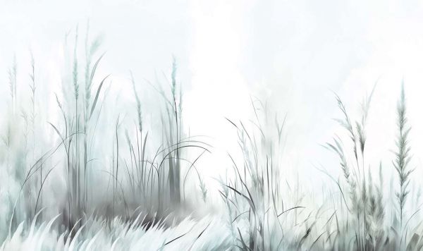 Szumne trawy w ciepłych odcieniach taupe wprowadzają stonowaną i stylową atmosferę. Efekty akwareli i delikatne pociągnięcia pędzla nadają ponadczasowy i elegancki wygląd, idealny do uspokajającego wnętrza.