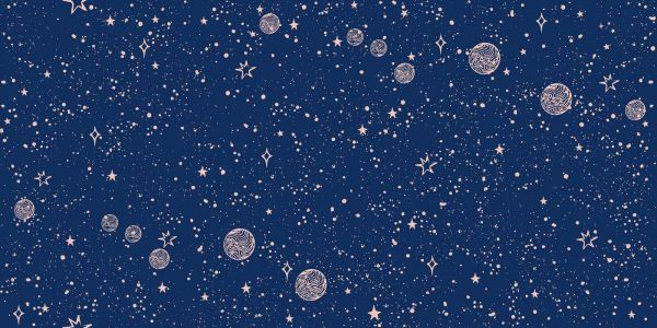 Kosmiczny Taniec to iskrzący wzór, w którym gwiazdy i finezyjnie narysowane planety zdają się harmonijnie poruszać przez przestrzeń. Nocnogranatowe tło zapewnia głębię i spokój, podczas gdy delikatnie różowe elementy nadają subtelny, marzycielski charakter. Wirujące linie na planetach nadają całości ręcznie rysowany, figlarny akcent, idealny dla tych, którzy lubią magiczną, kosmiczną atmosferę. Kosmiczny Taniec to miejsce, gdzie astronomia i estetyka się spotykają — wizualny hołd dla niekończącego się piękna wszechświata.