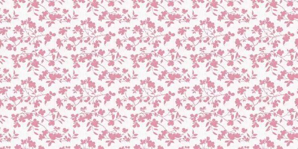 Herhalend wzór ozdobnych gałązek kwiatowych w starych różowych sylwetkach na jasnym tle przypominającym tkaninę. Całość wygląda delikatnie, romantycznie i ponadczasowo.