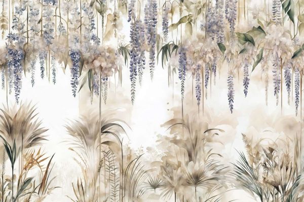 Dzięki delikatnej wisterii, kołyszącym się trawom i miękkim odcieniom akwareli, ten projekt wnosi poczucie spokoju i naturalnego piękna do każdej przestrzeni. Idealny dla tych, którzy szukają eleganckiego i ponadczasowego botanicznego dodatku do wnętrza.