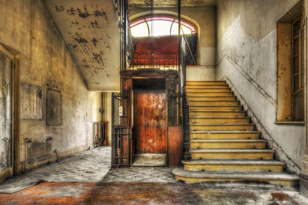 Opuszczone lobby hotelowe w różnych materiałach