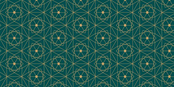 Orientalny wzór w złoto-żółtych kolorach z zielonym tłem. Ten wzór powtarza się w różnych rozmiarach i wielokrotnościach. Przyciąga wzrok i sprawia, że nie można oderwać od niego wzroku!