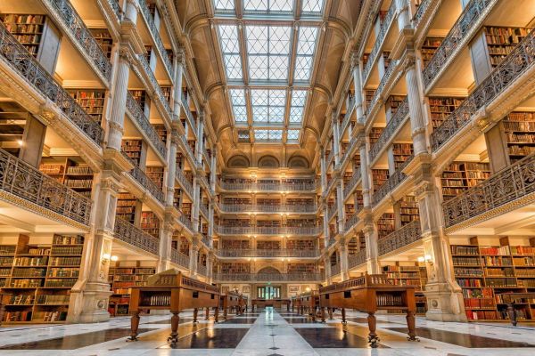 Ta imponująca biblioteka emanuje historią i wiedzą, z eleganckimi filarami, żeliwnymi balustradami i metrowymi regałami pełnymi literackiego dziedzictwa. Architektura promieniuje klasyczną elegancją, podczas gdy szklany dach wpuszcza naturalne światło, nadając przestrzeni otwarty i inspirujący charakter. Ciepłe drewniane detale wspaniale kontrastują z chłodnym marmurem, tworząc harmonijny i ponadczasowy wygląd.