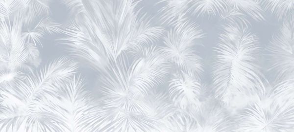 Lekkie palmowe liście w delikatnych odcieniach niebieskiego i jasnych pasteli, które odzwierciedlają świeżość jasnego nieba. Te subtelne kolory wprowadzają poczucie przestrzeni i beztroski do każdego pomieszczenia.