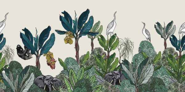 Fototapeta - Panorama dżungli z zwierzętami