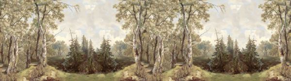 Ten projekt zabiera cię w ciszę i piękno lasu pełnego brzozowych i sosnowych drzew. Delikatne odcienie niebieskiego i subtelne białe akcenty tworzą świeży, uspokajający wygląd. Szczegóły drzew i subtelne przejścia w krajobrazie dają wrażenie rozległego i zapraszającego lasu. Dzięki mglistemu tłu wydaje się, że krajobraz nie ma końca, co dodaje poczucia głębi i spokoju.
