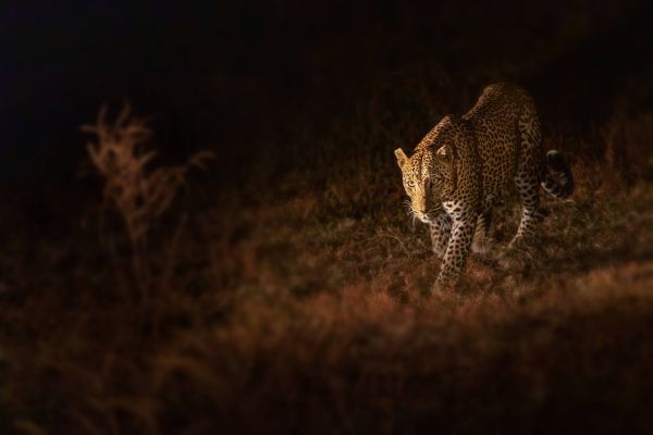 Gepard grasuje w nocy podczas swojego patrolu.