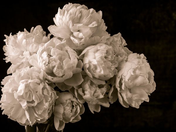 Pęczek piwonii w stylu vintage. Kolor sepii kwiatów tworzy styl vintage w Twoim domu.
