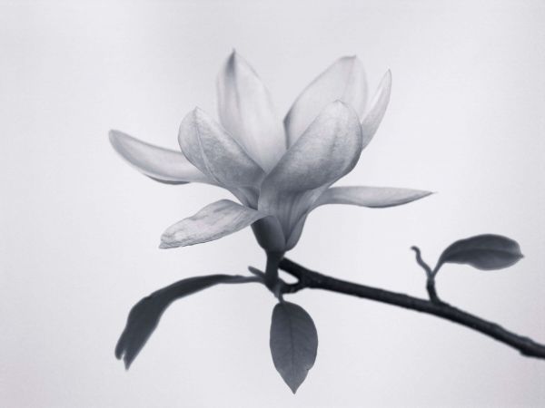 Zbliżenie na magnolię w czerni i bieli. Ponieważ zdjęcie jest czarno-białe, tworzysz spokojną atmosferę w swoim domu.