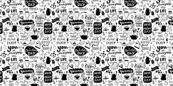 Wesoły wzór w czerni i bieli z kilkoma pozytywnymi tekstami.