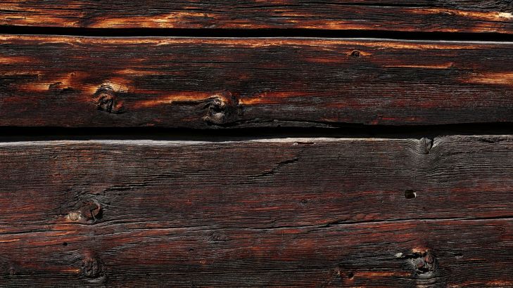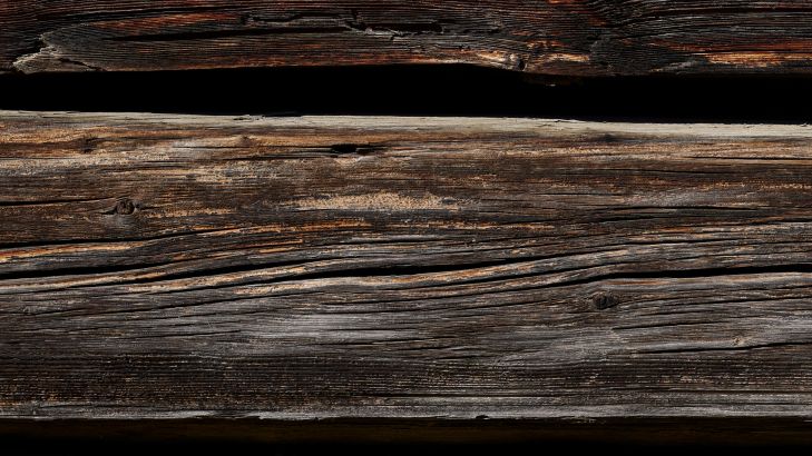 Zwietrzałe, ciemne poziome deski. Z tą fototapetą w domu, to tak jakbyś miał drewnianą ścianę.