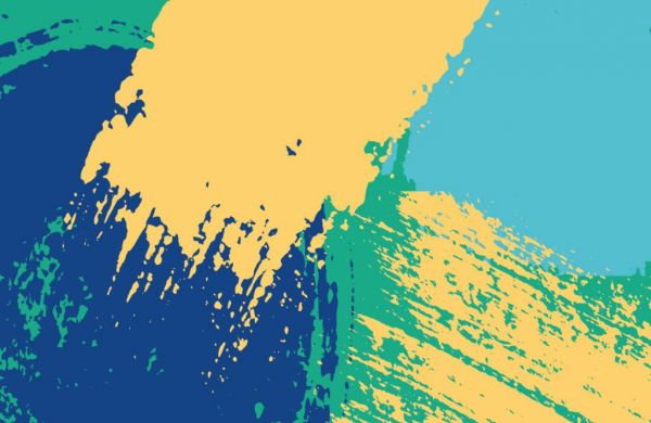 Wandkleed in verschillende kleuren met abstracte vlakken