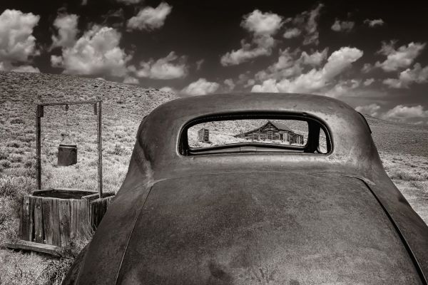 Fototapeta w czerni i bieli zacisznego domu. Połącz to na przykład w sypialni.