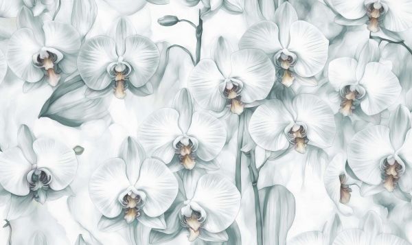 Orchideeje w tym projekcie wydają się niemal unosić w miękkiej chmurze pastelowych odcieni. Białe płatki kwiatów płynnie przechodzą w odcienie lila, różu i miętowej zieleni, co nadaje harmonijną i uspokajającą atmosferę. Lekka, akwarelowa wykończenie podkreśla marzycielski charakter całości. To wzornictwo jest niezwykle odpowiednie do romantycznych lub shabby-chic wnętrz, gdzie wprowadza miękką, niemal bajkową urodę. Połącz z pastelowymi poduszkami, zasłonami i akcesoriami, aby stworzyć uroczy całość, lub umieść w nowoczesnym i minimalistycznym wnętrzu jako subtelny akcent, który wprowadza delikatność i ciepło. Odświeżająca kombinacja odcieni dobrze wpisuje się w przestrzenie, w których centralne miejsce zajmują spokój i dobrostan, takie jak sypialnie, pokoje dziecięce czy przytulny kącik do czytania. Pudrowe kolory działają również rozjaśniająco w mniejszych pomieszczeniach, ponieważ wzmacniają poczucie przestrzeni i światła. Użyj neutralnych kolorów bazowych, aby skupić uwagę na orchidea, lub odważ się eksperymentować z innymi pastelowymi odcieniami dla zabawnego i harmonijnego efektu.