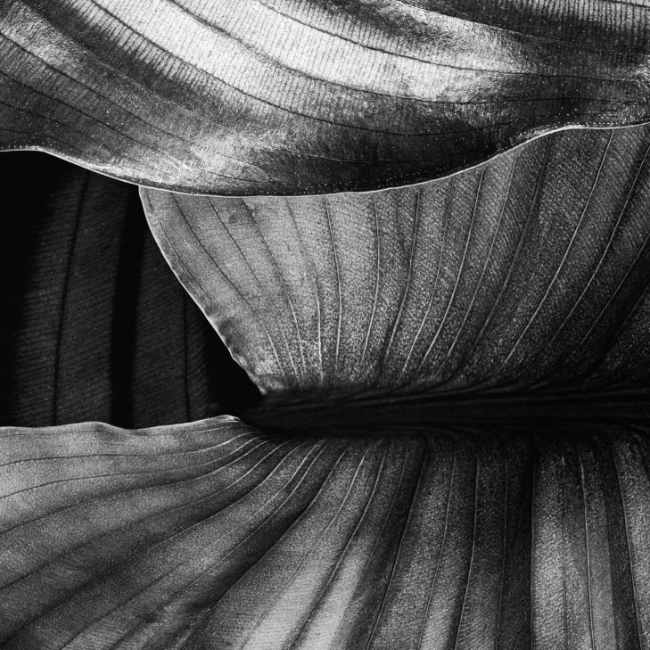 Roślina z pasiastymi liśćmi w czerni i bieli.