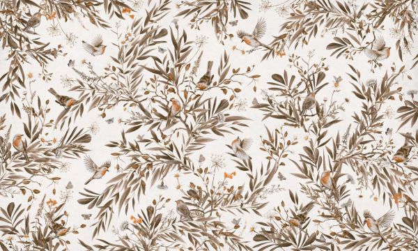 Lekki, przewiewny i naturalnie wyrafinowany: ten projekt ożywia letnią łąkę kwiatową na delikatnym, złamanym białym tle. Między ozdobnymi gałęziami i drobnymi liśćmi poruszają się żywo i wdzięcznie rudziki. Stokrotki i kwiaty polne w bieli i kremie dodają subtelnej świeżości, podczas gdy liście i ptaki w ciepłych brązowych i beżowych odcieniach dodają głębi i kontrastu. Motyle, małe kwiaty i pomarańczowe akcenty dodają zabawnych detali, które nadają projektowi dodatkowego uroku. Kolorystyka jest wyjątkowo ponadczasowa: jasne płótno tworzy otwartą i świeżą atmosferę, podczas gdy odcienie ziemi wprowadzają naturalną równowagę. Dzięki temu całość nie tylko jest jasna, ale także ciepła i zapraszająca. Ten styl doskonale pasuje do skandynawskiego wnętrza, gdzie dominują jasne gatunki drewna, minimalizm i naturalne materiały. Ale również w klasycznym wiejskim wystroju z antycznym drewnem, lnianymi tkaninami i delikatnymi zasłonami ten projekt prezentuje się pięknie. Struktura wzoru jest płynna i organiczna, co sprawia, że panuje wrażenie spokoju i przestrzeni. Ptaki dodają żywego akcentu, nie zakłócając spokojnego wyglądu. Całość oddycha naturą i wolnością, jakbyś na chwilę zatrzymał się na słonecznej łące kwiatowej. Idealny do pomieszczeń, w których światło i spokój odgrywają kluczową rolę, takich jak sypialnia, korytarz, biuro domowe lub spokojny pokój dziecięcy. Połącz z naturalnymi odcieniami, takimi jak beż, jasnoszary, piasek i złamana biel. Dodatki z rattanu, ceramiki lub jasnego drewna wzmacniają delikatny charakter tego projektu i sprawiają, że przestrzeń staje się harmonijna i pełna atmosfery.