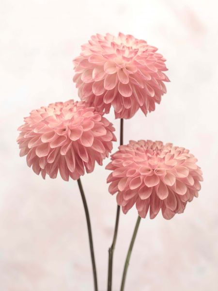 Portret trzech różowych dalii. Połącz tę fototapetę w sypialni lub salonie, aby uzyskać jeszcze większą atmosferę.