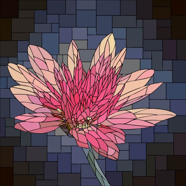 Różowy kwiat w rozkwicie w różnych materiałach