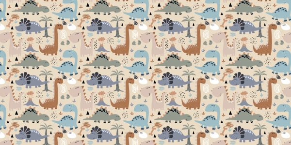 Obraz rysowanych dinozaurów z jajami i kośćmi. Połącz to w pokoju dziecięcym.