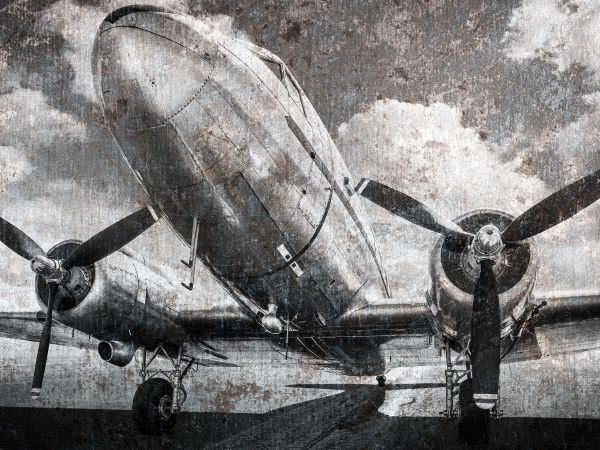 Vintage samolot na betonie. Efekt betonu nadaje tej tapecie wygląd vintage.