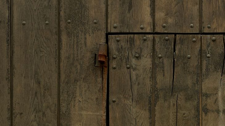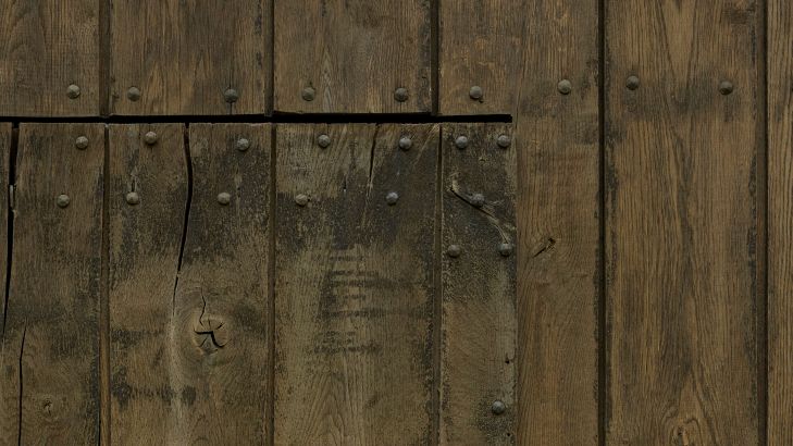 Drewniana ściana z drzwiami. Z tą fototapetą w domu jest tak, jakbyś sam mógł przejść przez drzwi.