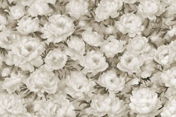 Jasne, białe piwonie drapowane na ciepłym, delikatnożółtym tle, tworząc słoneczną i optymistyczną atmosferę. Subtelne pociągnięcia pędzla i delikatne odcienie kolorów nadają każdemu pomieszczeniu zapraszający i radosny charakter.