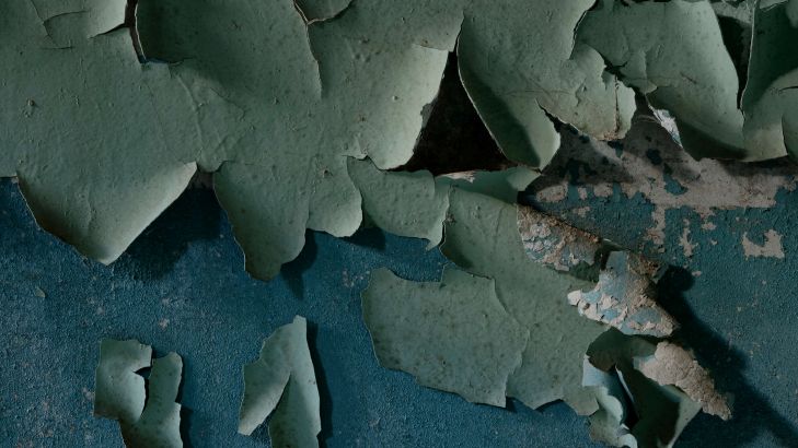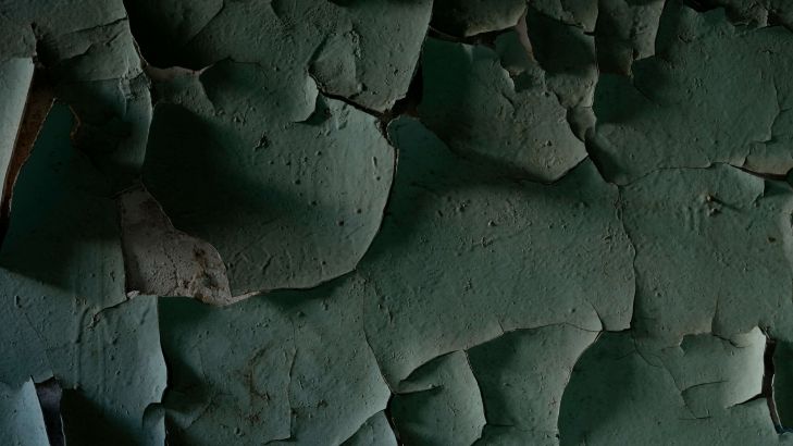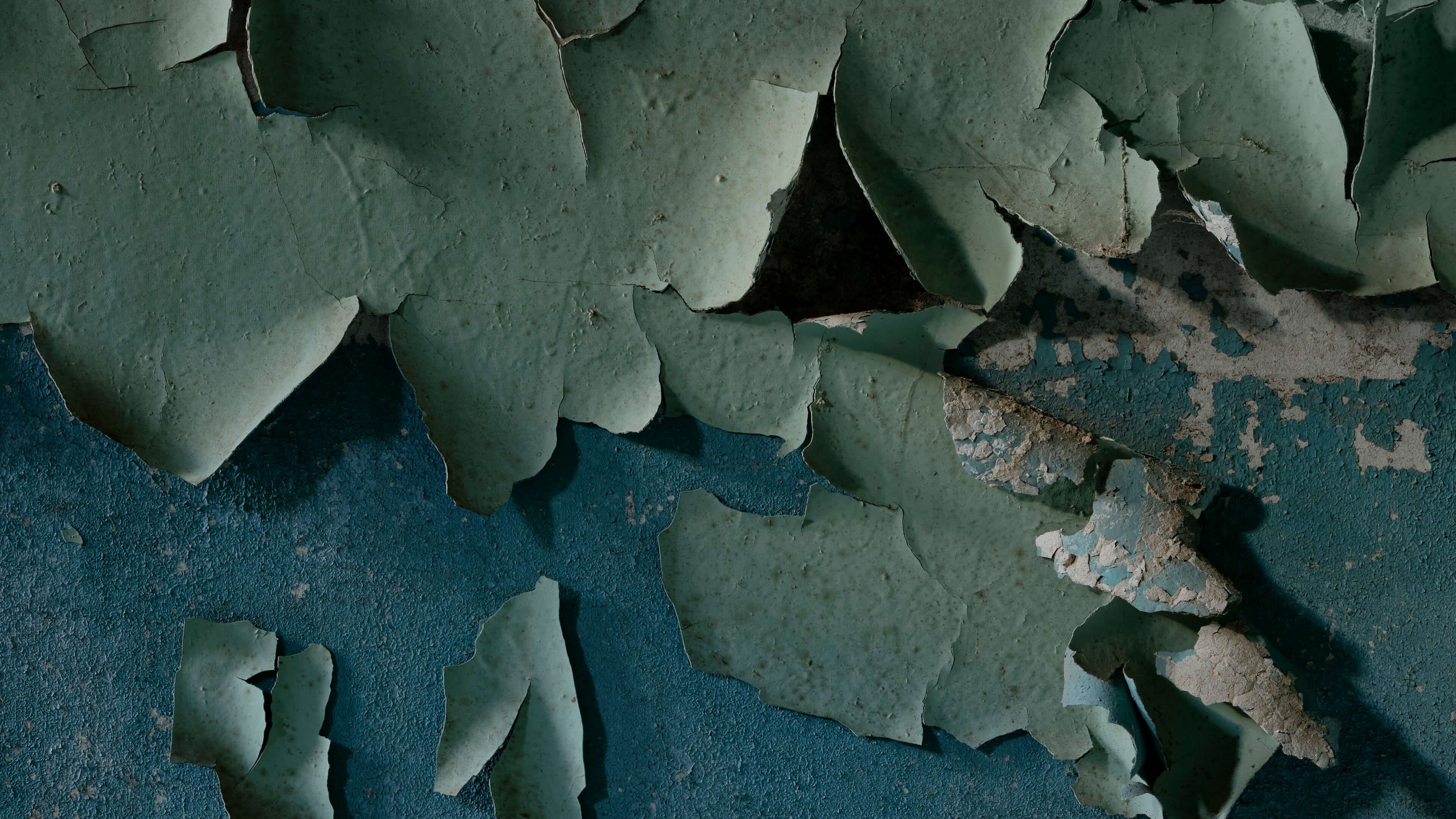 Ściana pomalowana farbą o zwietrzałej strukturze w różnych materiałach