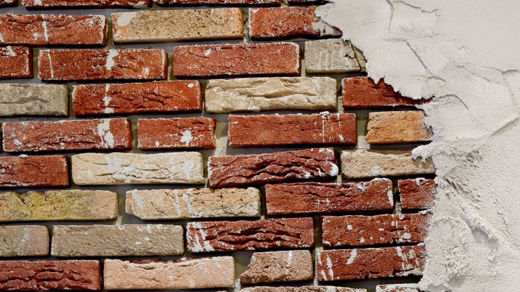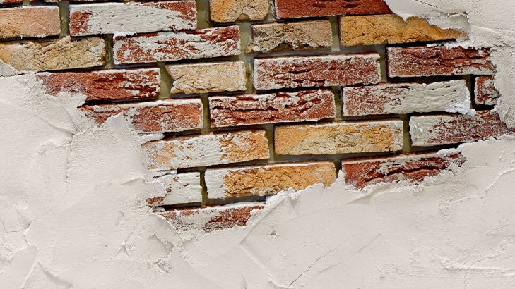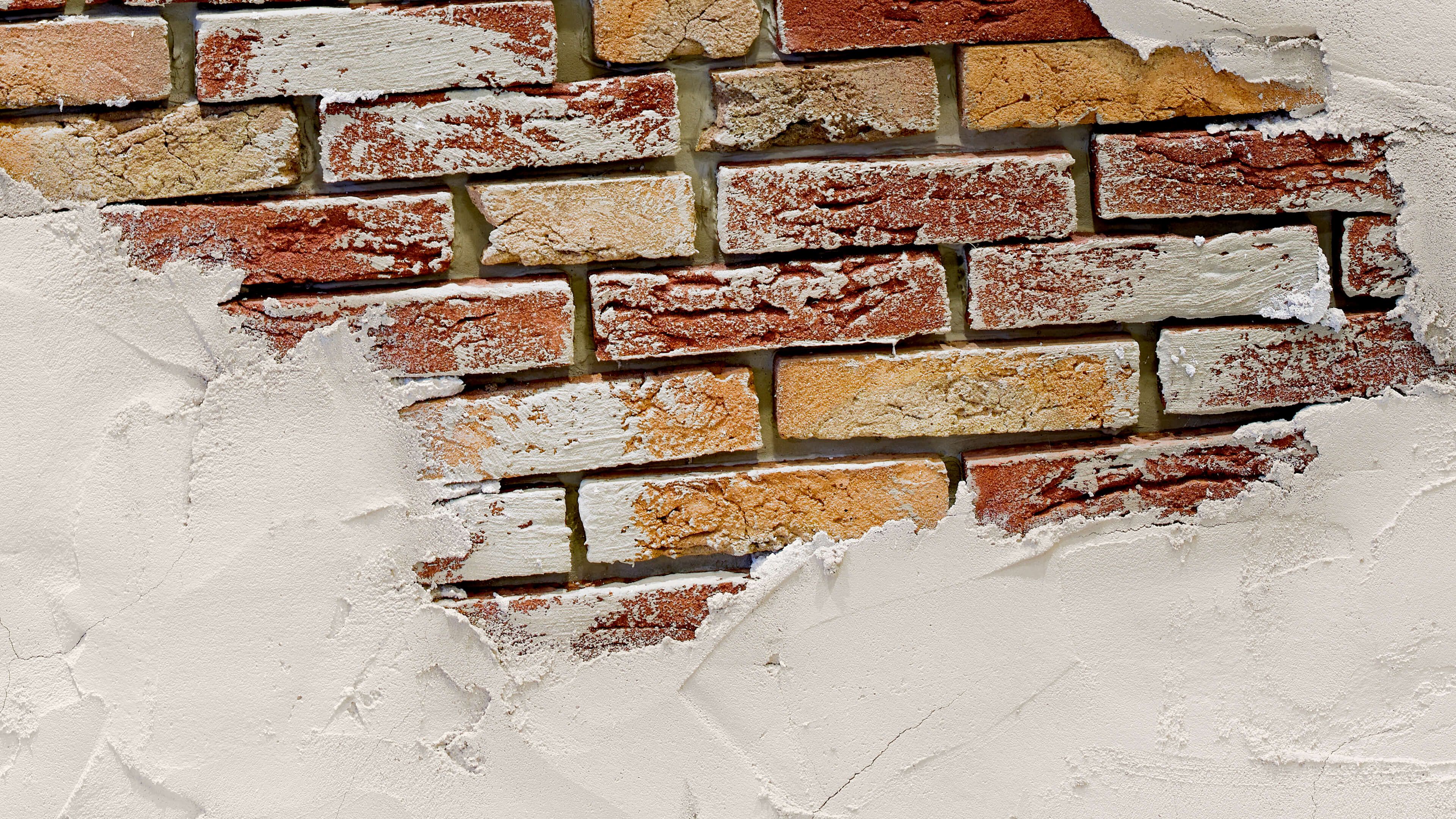 Ściana ze stiukami i cegłami. Zmień swój nudny pokój w wyjątkową przestrzeń dzięki tej fototapecie.