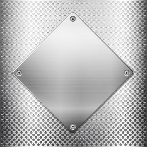 Zbliżenie na metalową kratkę ze srebrną kwadratową płytką.