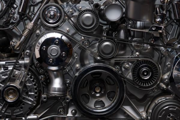 Fototapeta z dokładnym zbliżeniem błyszczącego silnika wysokoprężnego.