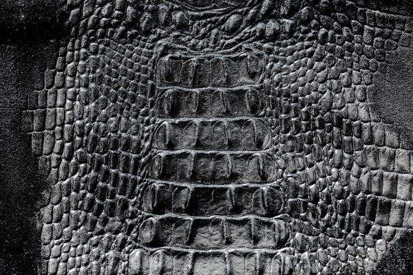 Skóra krokodyla w kolorze czarnym na fototapecie. Czarny kolor tworzy efekt vintage w Twoim domu.