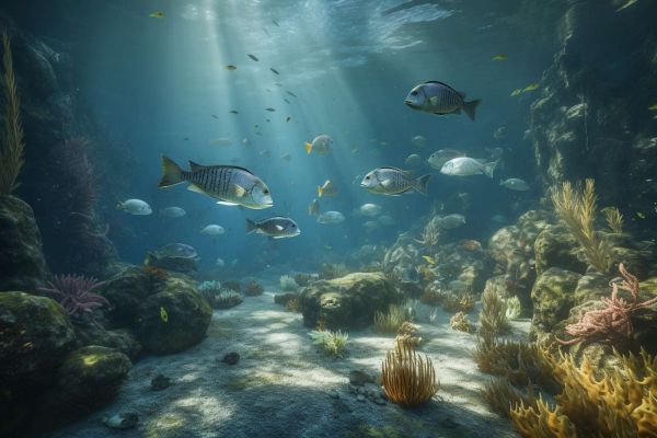 Spokojny świat podwodny rozpościera się przed nami, gdzie światło słoneczne delikatnie przenika przez czystą wodę, podkreślając różnorodność mieszkańców morza. Ukojenie harmonii między kwitnącymi koralowcami a pływającymi rybami tworzy naturalną symfonię kolorów i życia.