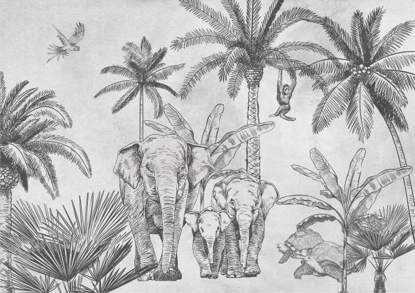 Słonie i żółwie w lesie. Hip i modna tapeta. Ta tapeta naprawdę wykończy twój pokój.