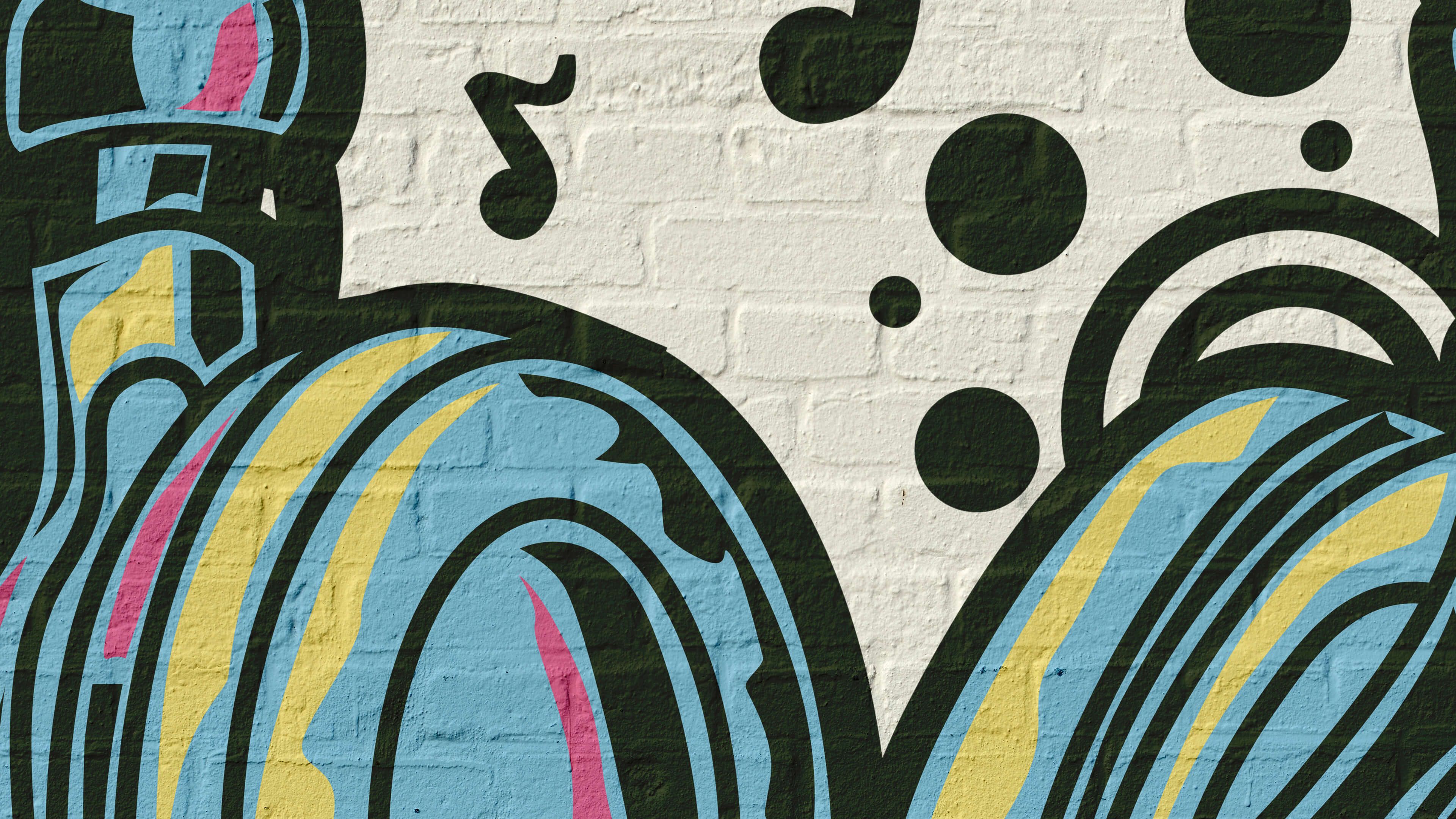 Graffiti z słuchawek na białej ścianie. Połącz tę fototapetę w swoim pokoju i stwórz jeszcze większą atmosferę w swoim domu.