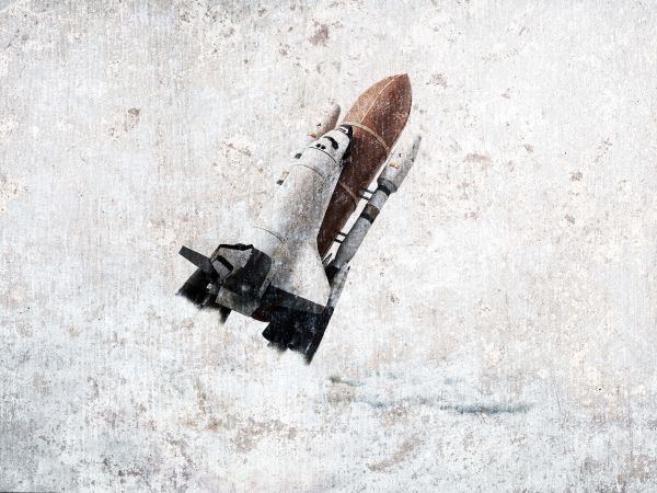 Prom kosmiczny na betonie. Ponieważ prom kosmiczny jest na betonie, tapeta ta tworzy w Twoim domu atmosferę vintage.