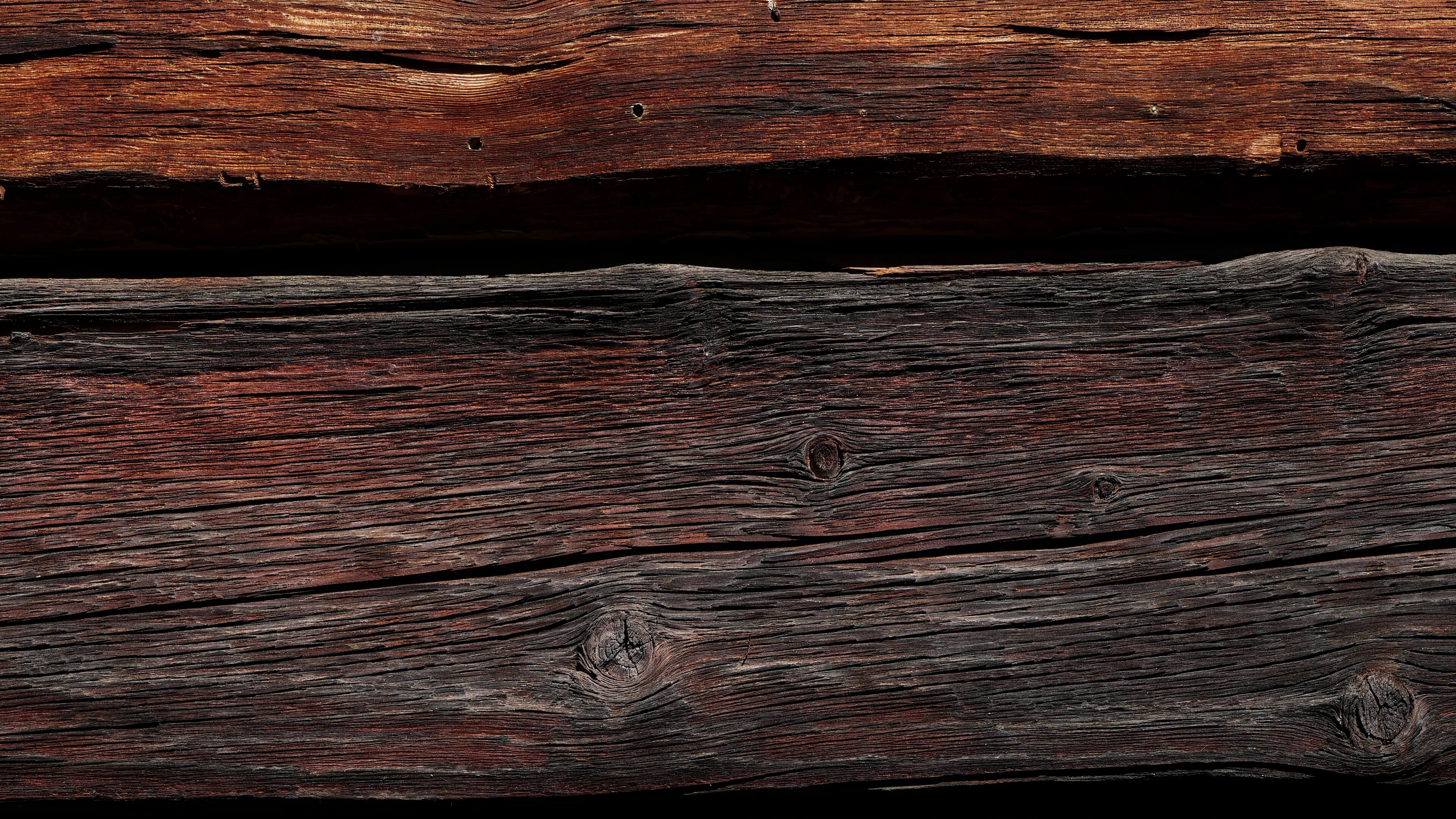 Spalone stare drewno z pięknymi poziomymi drewnianymi deskami. Ciepłe kolory od razu tworzą więcej atmosfery w Twoim domu.