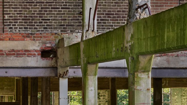 Stara opuszczona fabryka. Stwórz industrialny wygląd z tą fototapetą w swoim domu.