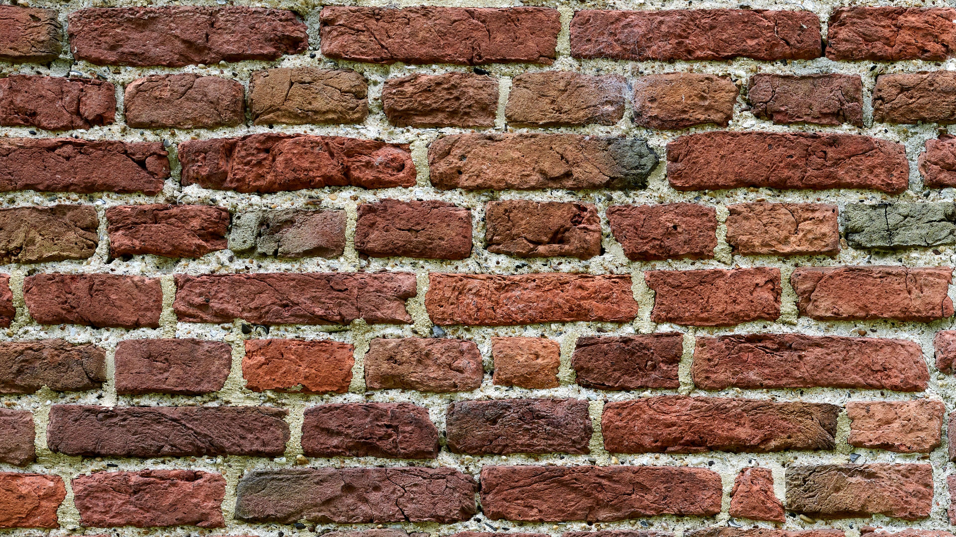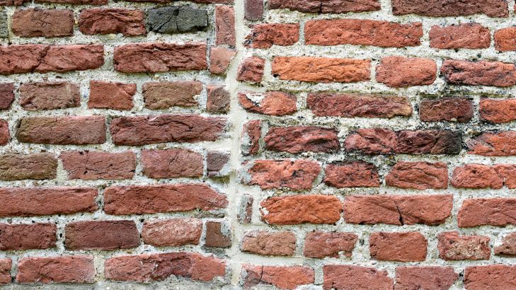 Stary pęknięty mur z cegły z zagęszczeniem na dole.