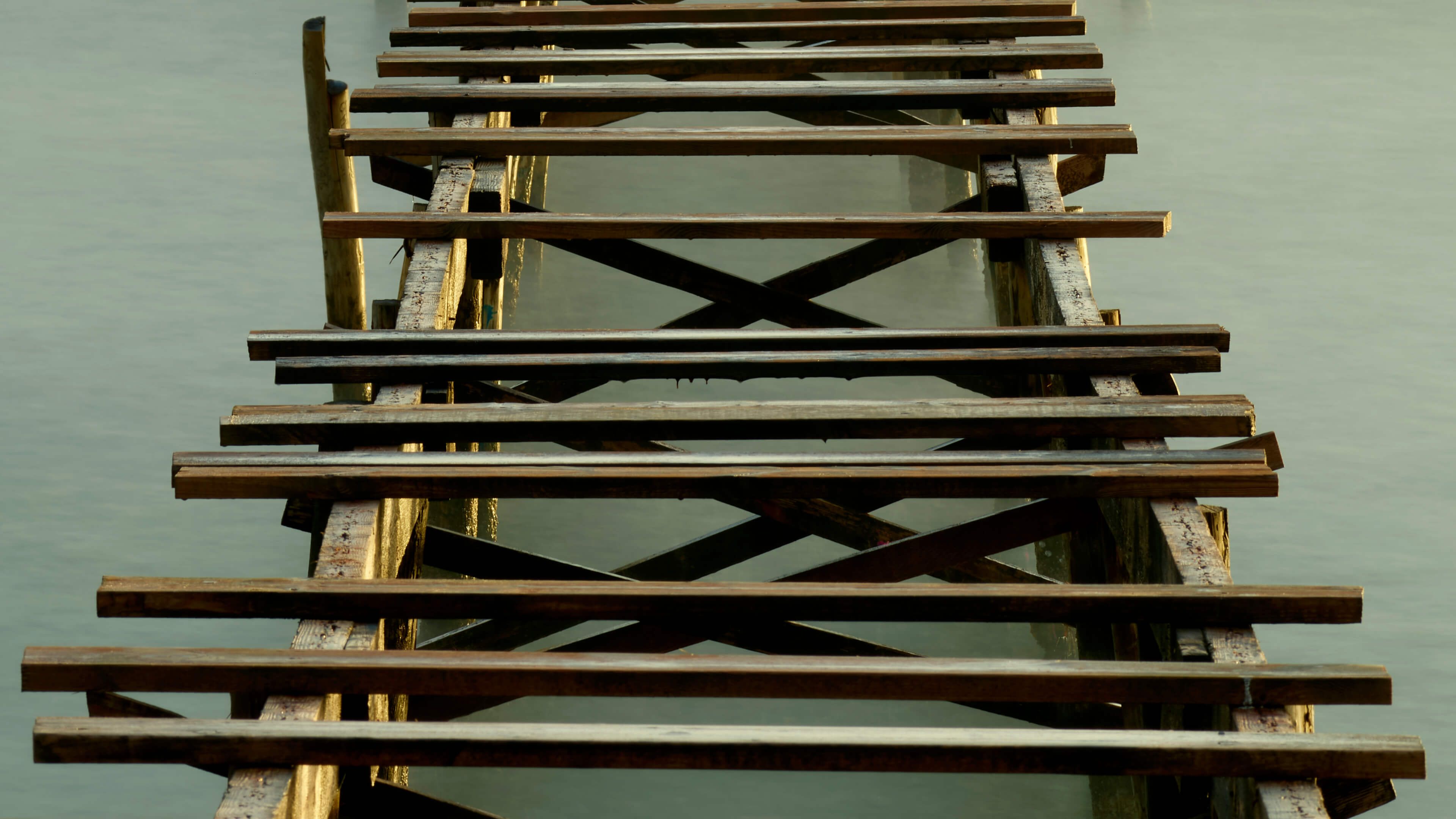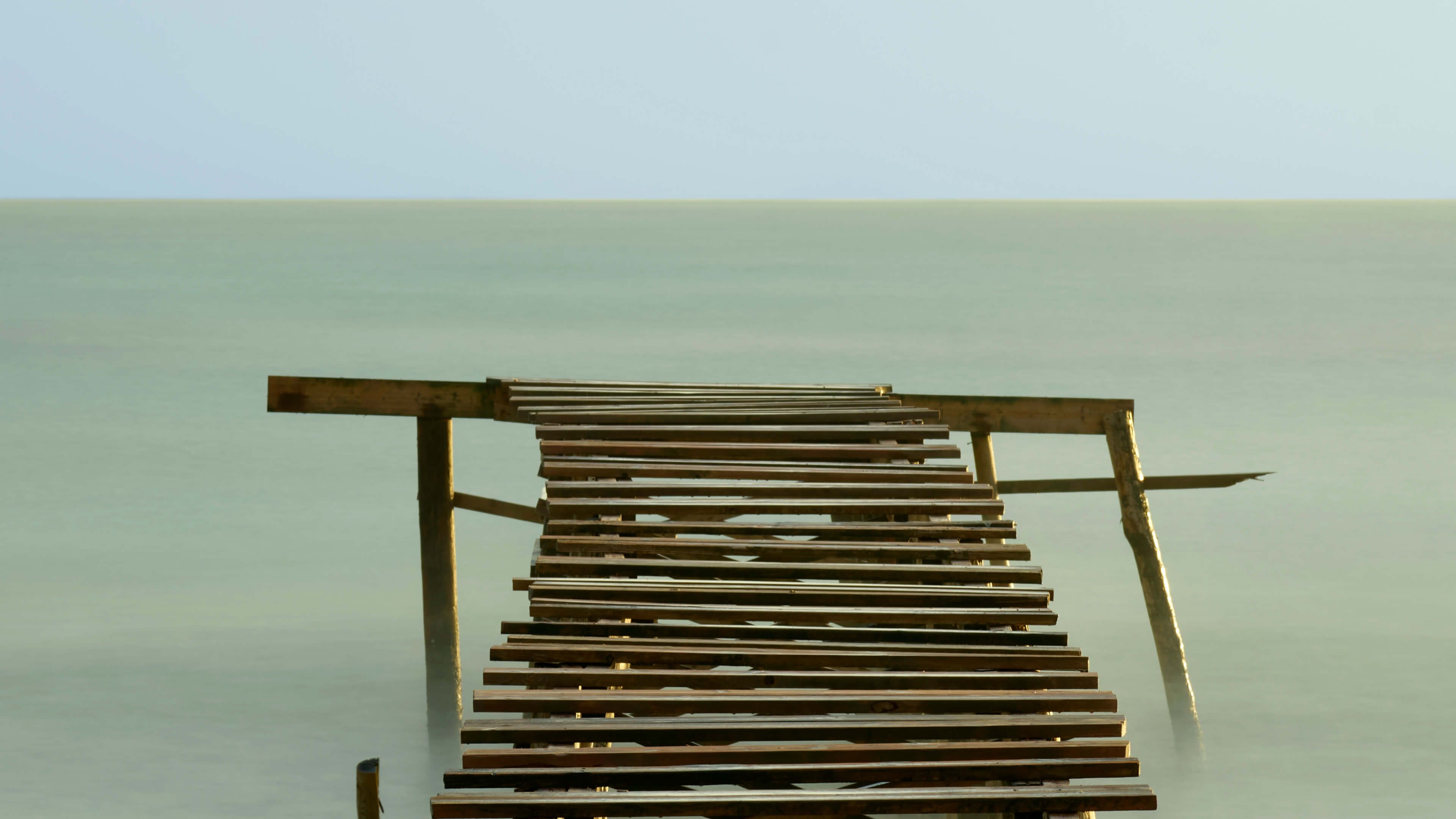 Wąskie molo wykonane ze starego drewna na wybrzeżu.