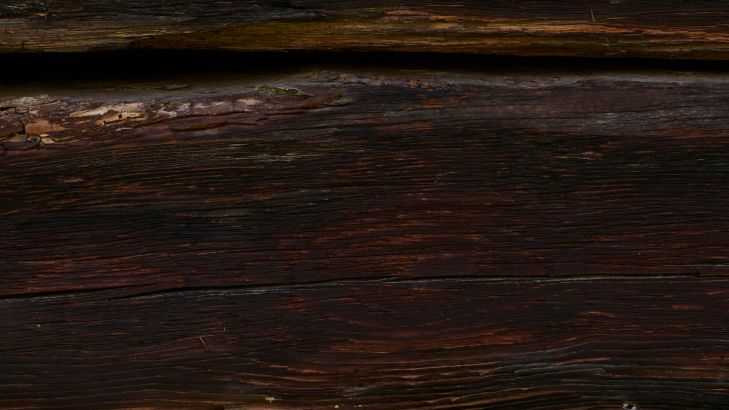 Stare i ciemne solidne drewno. Ze względu na ostry obraz, uszkodzenia drewna są wyraźnie widoczne. Daje to żywy efekt tej fototapety.