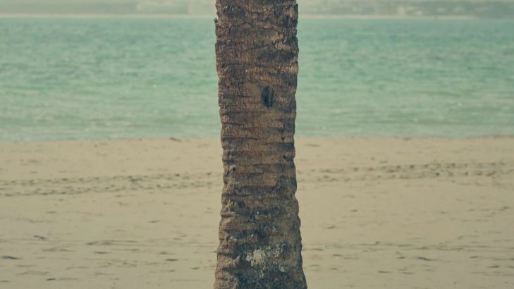 Piękna zabytkowa palma na plaży.