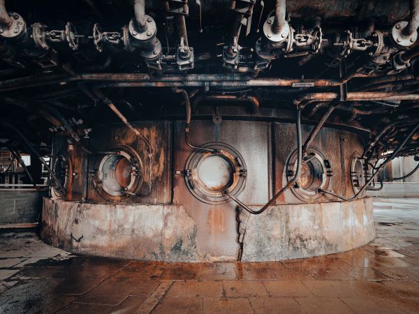 Stary piec przemysłowy opuszczonej elektrowni węglowej.