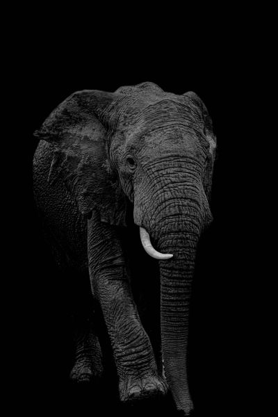 Czarno-biały obraz podkreśla formę i obecność. Obraz sprawia wrażenie klasycznego i mocnego.