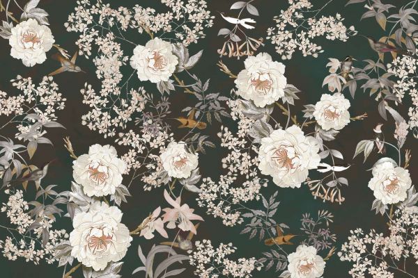 Una refinada composición de belleza natural, en la que flores, pájaros y elementos botánicos se representan en un equilibrio armonioso. Los colores sutiles y los patrones detallados brindan una apariencia elegante y atemporal que transforma cualquier habitación.