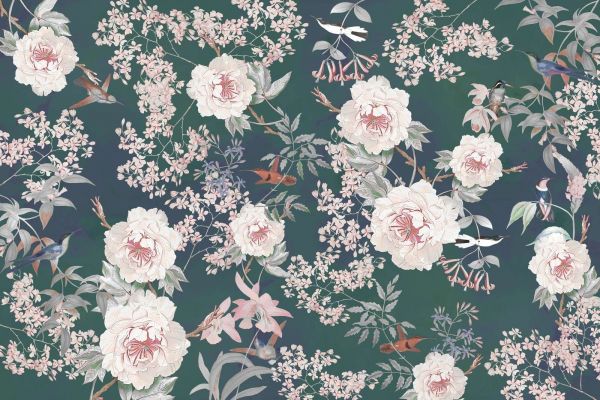 Una refinada composición de belleza natural, en la que flores, pájaros y elementos botánicos se representan en un equilibrio armonioso. Los colores sutiles y los patrones detallados brindan una apariencia elegante y atemporal que transforma cualquier habitación.