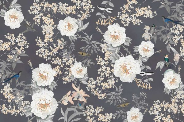 Una refinada composición de belleza natural, en la que flores, pájaros y elementos botánicos se representan en un equilibrio armonioso. Los colores sutiles y los patrones detallados brindan una apariencia elegante y atemporal que transforma cualquier habitación.
